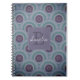 Retro circle pattern in subdued tones of purple and green on stylish personalised notebook.