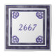 A hand drawn purple and grey frame around a purple house number with dark blue outlines and a pattern in the corners on a white background.