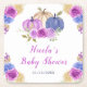 Purple and Navy Blue Floral Pumpkins Baby Shower Square Paper Coaster
