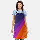 Abstract illustration of diagonal retro style stripes in purple, blue, orange and yellow colours on dark blue background