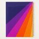 Abstract illustration of diagonal retro style stripes in purple, blue, orange and yellow colours on dark blue background