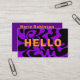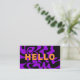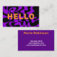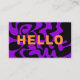 This eye catching design has a bold font with the word "hello", on a background with an asymmetric abstract, swirling pattern in black. With bright colours, in purple for the backdrop, and orange in the typography on the front.