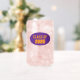 Trendy can glass for the school grad that features school colours of purple and orange, with class year printed in bold, orange lettering on a purple oval background. Great for graduation and class reunion parties. Edit class year with your own as desired.