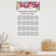 Watercolor floral wedding seating chart. Please Find Your Seat and the bride and groom names are at the top. Very easy to change the template text to your guest names. A gorgeous combination of purple and pink flowers with dashes of purple and blue. Lots of greenery with assorted vines and leaves make it a very modern floral design. It has a bit of a Boho Chic vibe, because of the dangling greenery. The text is a dark inky purple to pick up on one of the hottest colour trends of the season. It also complements the flowers perfectly. Easy to customise. Copy and past this link in your browser to see all of coordinating items: goo.gl/bDYWnb