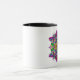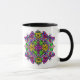 Hand drawn artwork dragonfly and flowers purple, pink and yellow mandala coffee mug.