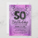 Purple and Pink Glitter 50th Birthday Invitation