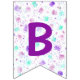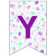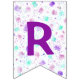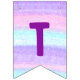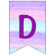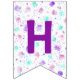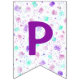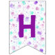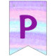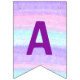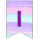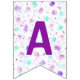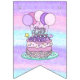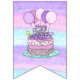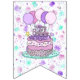 Pink and purple hand drawn birthday cake, balloons bunting flag banner.