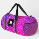 Purple and Pink Leopard Print Monogram Duffel Bag. Gorgeous luxe leopard print design in feminine colours of purple and pink. Go wild in style with this vibrant bag. Ideal for the adventurous traveller, gym junkie, sports freak, student, teacher, mum and lovers of bold, beautiful animal print bags and accessories.