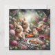 Purple and Pink Spring Floral Bunny Easter Picnic Holiday Card