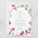 A pretty floral wedding invitation featuring a surround purple, lilac and pink watercolor sweet pea flowers.