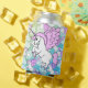 Cute White Unicorn with Pink hair and wings with a pattern of Unicorn background in gradient blue. Fully customisable. The Big Unicorn can be moved around and resized.