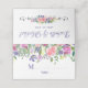 Beautiful watercolor table card features a purple and pink floral top border above the guest's name and table number. The back of the card is just as pretty. The wedding couple's names and wedding date are placed above another floral design with the same pink and purple flowers on the front. The underside of the table card is deep purple.