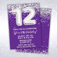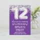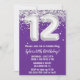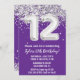 Purple silver and white 12th Birthday invitation 12 birthday party invitation for a black white silver with modern script writing and fun foil balloons.