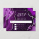 Make a bold and elegant first impression with this purple and silver agate marble RSVP card, featuring rich jewel tones, organic stone textures, and shimmering silver accents perfect for fall and winter celebrations. The deep amethyst hues paired with metallic silver detailing create a dramatic yet refined look ideal for a wedding RSVP, birthday RSVP, or Sweet Sixteen RSVP with a formal, modern, or glamorous aesthetic. Inspired by natural agate and geode patterns, this luxurious design coordinates beautifully with upscale seasonal events and is fully customizable to match your details, adding timeless sophistication to autumn and winter celebrations alike.