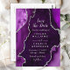 This elegant and glamourous save the date invitation features a purple agate marble background with faux silver glitter accents. The text combines handwritten script and modern sans serif fonts for a classy and sophisticated look. This will be perfect for autumn fall and winter weddings.