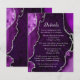 Celebrate every detail of your wedding with this purple and silver agate marble details card. Rich amethyst hues, organic stone textures, and shimmering silver accents combine to create a sophisticated, jewel-toned design that complements a modern, elegant, or glamorous celebration. The striking contrast of deep purple and metallic silver provides a polished backdrop for sharing both reception and lodging information, keeping your guests informed in style. Fully customizable with your event schedule, hotel details, and special notes, this agate-inspired card adds a cohesive and refined touch to your wedding stationery suite, perfect for fall or winter weddings.