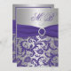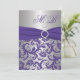 Purple and Silver Damask Monogrammed Invitation