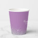 Purple and Silver Faux Glitter Custom Paper Cup. This glitter and glam party cup is designed with customisable text with a purple background, silver glitter, and sparkling gemstone crown.