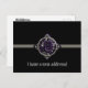 Beautiful purple flowers in a grey Gothic frame is placed on a grey band against a black background on this beautiful change of address postcard.. Very beautiful and elegant.