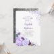 Purple watercolor flowers and silver glitter confetti birthday party invitations
