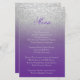 Dinner / Lunch Menu. Modern Wedding Day Purple and Silver Glitter. Matching products available - 📌If you need further customisation, please click the "Click to Customise further" or "Customise or Edit Design"button and use our design tool to resize, rotate, change text colour, add text and so much more.⭐This Product is 100% Customisable. Graphics and / or text can be added, deleted, moved, resized, changed around, rotated, etc... ⭐99% of my designs in my store are done in layers. This makes it easy for you to resize and move the graphics and text around so that it will fit each product perfectly. 📌 (Please be sure to resize or move graphics if needed before ordering) You can also "TRANSFER DESIGN" on other Zazzle products and adjust the design to fit most of Zazzle items. (button is down on the right side of the page) This design is made with high resolution vector and/or digital graphics for a professional print. 📌NOTE: (THIS IS A PRINT. All Zazzle product designs are "prints" unless otherwise stated under "About This Product" on the left side of this page) The design will be printed "EXACTLY" like you see it on the screen and on the product...so please make sure when you do your changes on the resizing of any of the graphics or text that it fits in the areas correctly and that your spelling and wording is how you like it to be in size, colour and font. If you have any questions about the "DESIGN ONLY" or need help please contact me at ✉ siggyscott@comcast.net or visit my store link: https://www.zazzle.com/store/designsbydonnasiggy (Copy and Paste) I'll be happy to help. 📌 ALL OTHER QUESTIONS (shipping, refund, the printing is not correct, the product itself, etc...) please contact Zazzle or the Maker ⭐DIRECTLY⭐. Thank you for the support and stopping by my store - DesignsbyDonnaSiggy. © Donna Siegrist⭐⭐⭐ ZAZZLE promises 100% satisfaction. If you don't absolutely love it, Zazzle will take it back! ⭐⭐⭐ 1-888-8ZAZZLE (1-888-892-9953) Phone hours: Mon - Fri: 9AM - 5PM PT (12PM - 8PM ET)