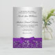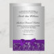 Formal purple lace and silver wedding invitations. Easily personalise for your wedding day. Designs are flat printed illustrations/graphics - NOT ACTUAL SILVER, BOW OR LACE.
