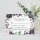 Purple and Silver Meal Choice Floral Rose Wedding RSVP Card