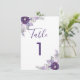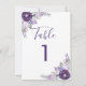 This table number card has light and dark purple watercolor flowers, leaves and silver floral elements. The copy is fully editable. You can also change the font. This card has matching invitations, envelopes, labels and stamps. Make all your wedding items coordinate!