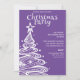 Purple and White Christmas Tree party invitation with a cute whimsical fun party invitation for a festive Holiday party.