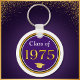 Purple and White, Class of 75 Reunion, PERSONALIZED Class Reunion Keychains in many Styles. Class Reunion Party Favours. Designer Linda can CHANGE the 1975 YEAR to ANY YEAR and COLORS. You, or CALL Designer Linda: 239-949-9090 ET can CHANGE the Purple Background and Purple and White Text COLORS to your High School Colours. Gold 1975 and Frame is the 50 year Symbol but I, Designer Linda can CHANGE it for you, along with any other Changes your would like: over 1000 other Class of 1975 Reunion ideas, Class Reunion Party Favours, 50th class reunion presents (or ANY YEARS), decorations and more.