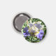 This magnet features an image of a purple and white iris with delicate gold edges. It is a captivating sight, showcasing the beauty and elegance of nature's creations. The magnet, rectangular or circular in shape, has a smooth and glossy surface that enhances the vividness of the image.