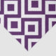 This bold, geometric, regal purple and white pattern is an original ornamental design. Purple diamonds with white borders are surrounded by royal purple meanders which angle around them. White zigzags separate the winding purple paths and offset diamonds.