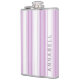 Purple and white vertical stripes custom name hip flask
