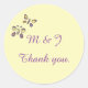 Pretty purple and yellow butterflies are printed on custom monogram stickers with the words, Thank you. There is a template placeholder for you to type in initials. The text is written in purple, and the background is pale yellow. The text is easy to customise. There are matching items in this store. Thank you for shopping at CherylsArt on Zazzle.