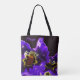 Do you love purple flowers with a touch of yellow? This tote bag is a printed image of an abstract acrylic painting of beautiful purple and yellow flowers. You can customise this bag to add your own name or just have tbe purple and yellow design.