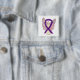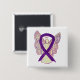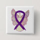 Awareness pin features the painting of a purple awareness ribbon angel on a custom button pendant. The purple awareness ribbon colour shows support for Pancreatic Cancer, Crohn's Disease and Colitis, Alzheimer's Disease, Anti-Gay Bullying (Spirit Day), Cancer Survivor (All Kinds), Domestic Violence, Lupus, Sjögren's Syndrome, Chronic Pain, Leiomyosarcoma, Arnold-Chiari Malformation, Migraines, Cystic Fibrosis, Retinitis Pigmentosa, and Fibromyalgia, to name a few. Purple awareness angel ribbon art lapel pins or buttons can be customised with personalised messages to make great cause buttons for fundraiser pendants for cancer or other causes, awareness pin gifts, or other special pendant events or awareness lapel pin for cause's occasions.