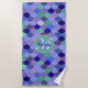 Purple & Aqua Teal Mermaid Scales Name + Monogram Beach Towel