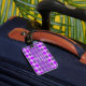 Beautiful purple argyle pattern luggage tag. Different shades of purple: electric purple, dark lavender and rich brilliant lavender.