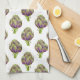 Whimsical and rustic kitchen towel featuring watercolor illustration of artichokes.