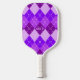 Personalised pickleball paddle Purple on Purple Argyle. The argyle pattern has long been recognised as a classic design that has stood the test of time. The repeated diamond-shaped pattern evokes a sense of sophistication and elegance, adding a touch of refinement to pickleball attire and accessories. The symmetry and precision of the pattern also align with the sometimes meticulous angles and shots of the sport of pickleball. Additionally, the combination of bold and contrasting colours within the argyle design creates visual interest and makes a statement on the pickleball court. Overall, the argyle pattern as timeless charm, aesthetic appeal, and ability to add a touch of style and personality to any pickleball gear. Colourful many shades of purple with white stitching argyle pickleball-themed gift for your pickleball-loving mum, dad, uncle, aunt, brother, sister, neighbour, grandpa, grandma, husband, wife, friend, or work colleague who won't stop talking about pickleball.