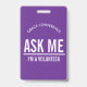 Purple Ask me I'm a volunteer id badge
