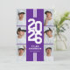 Modern purple athletic graduation party invitations featuring an eye-catching class year layout in a varsity font, a photo collage of the grad, two white stripes, their name, school, and an easily personalised party invite template, these sporty invites will make your celebration a memorable one.