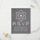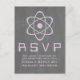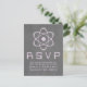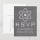 Cute and nerdy Atomic Chalkboard Wedding Response Card featuring a simple atomic symbol in lavender on a chalkboard look background. This geeky and fun wedding RSVP postcard is perfect for the science enthusiast couple! Easy to customise, simply add the details of your wedding in the spaces provided. Click "Customise It" to find more personalisation options.