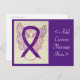 The guardian angel postcard art print features the picture of a purple awareness ribbon angel painting. Add your own optional words or message to the postcard for personalised angel art cards! You can also remove the text for an art only angel postcard print. The purple awareness angel ribbon painting postcards can be customised with personalised messages to make great awareness cause images or pictures for fundraisers, awareness gifts, or other special events. Give this angel art as an awareness ribbon gift for any occasion.
