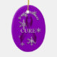 A graphic illustration of a purple awareness ribbon with snowflakes by artist designer Charmaine Paulson on a Christmas ornament. The ornament has the text "All i want for Christmas is a Cure" and text templates on the back for your personalisation.