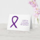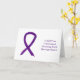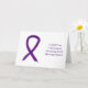 The greeting or note card features the picture of a purple awareness ribbon painting. Add your own optional words or message to the greeting card for personalised art notecards! You can also remove the text for an art only note card. A purple awareness ribbon colour means support for Pancreatic Cancer, Crohn's Disease and Colitis, Alzheimer's Disease, Anti-Gay Bullying (Spirit Day), Cancer Survivor (All Kinds), Domestic Violence, Lupus, Sjögren's Syndrome, Chronic Pain, Leiomyosarcoma, Arnold-Chiari Malformation, Migraines, Cystic Fibrosis, Retinitis Pigmentosa, and Fibromyalgia. Let this purple awareness ribbon support these causes! The purple awareness ribbon painting art greeting cards can be customised with personalised messages to make great awareness cause art cards for fundraisers, awareness gifts, or other special events. Give this art card as an awareness ribbon gift for any occasion.