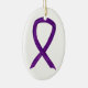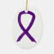 The purple awareness ribbon holiday pendant art ornament features the painting of a purple awareness ribbon. The purple awareness ribbon art can be customised with personalised messages to make great awareness cause ornaments or pendants for fundraisers, awareness Christmas or holiday gifts, or awareness ribbon merchandise other special cause events or occasions. A purple awareness ribbon colour means support for Pancreatic Cancer, Crohn's Disease and Colitis, Alzheimer's Disease, Anti-Gay Bullying (Spirit Day), Cancer Survivor (All Kinds), Domestic Violence, Lupus, Sjögren's Syndrome, Chronic Pain, Leiomyosarcoma, Arnold-Chiari Malformation, Migraines, Cystic Fibrosis, Retinitis Pigmentosa, and Fibromyalgia. Let this purple awareness ribbon support these causes!