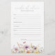 Make your baby shower bloom with joy with the Purple Baby In Bloom Wildflower Baby Advice Card. This lovely floral advice card is sure to add a touch of beauty and wisdom to your baby's early days. Give your little one the gift of generations of experience with this floral advice card. Guests will love sharing their top parenting tips and heartfelt well wishes for your growing family. The beautiful design incorporates soft purple wildflowers and greenery, making it a perfect complement to a woodland or floral-themed baby shower. Keep it as a treasured keepsake of advice and memories from loved ones.