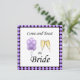 Come and toast the Bride with purple balloons and champagne glasses on front. Balloons and all the information for your event on the back of this pretty purple invitation.
