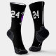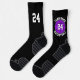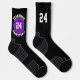 Make your own personalised high-performance athletic crew socks for basketball players and teams with purple team colours! Click to personalise the template and type your own basketball team name, basketball player jersey number and basketball player position in the custom text boxes. The colour of the sock itself (currently set on black) can be customised as well. Makes a great team gift for basketball teams with purple team colours, especially high school and college basketball teams! The high-performance athletic socks can we worn to basketball practices or games.